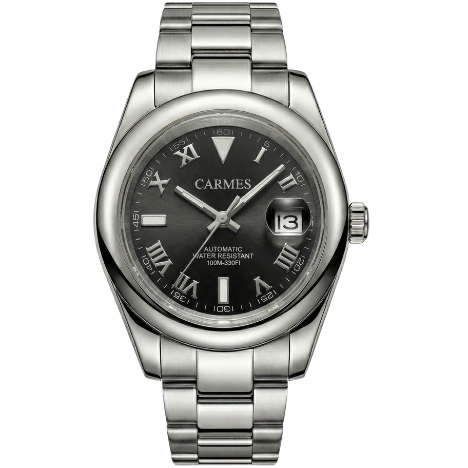 Carmes Roma incarne une pièce de caractère, se déclinant en deux interprétations : lunette cannelée (FL), pour une présence affirmée, ou bracelet Oyster (STE), pour une allure plus sobre et contemporaine. Une montre de prestige, conçue pour traverser le temps avec distinction.